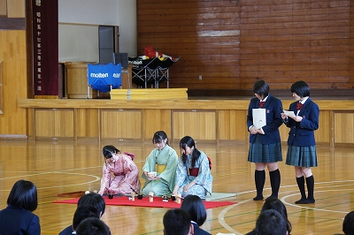 令和2年2月28日本校第一体育館にて令和元年度 表彰式および同窓会入会式が行われました。