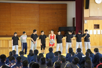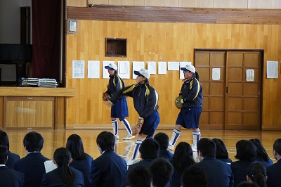 生徒会より各委員会について、各部より実技を交えた部紹介がありました。