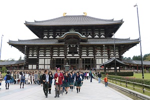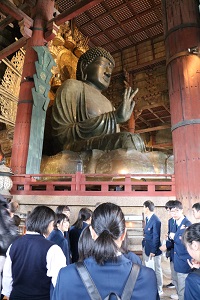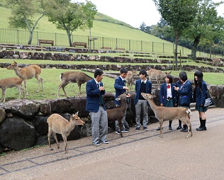 初日は、福島空港から伊丹空港まで飛行機で移動し、その後、法隆寺と奈良公園の見学をしました。東大寺の大仏の大きさに驚いたり、鹿と記念撮影をするなどして、奈良の歴史と文化に触れることができました。