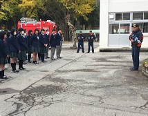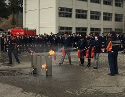 10月31日(火)、今年度2回目の避難訓練を実施しました。本校では、春季(第1回)が地震、秋季(第2回)が火災を想定した訓練をしており、今回は校内から出火したと仮定して避難訓練を行いました。サイレンと緊急放送が流れると、生徒全員が校舎外にスムーズに避難できました。校長と消防署員の講評後には、生徒代表による消火訓練も実施し、約30分の訓練は終了しました。