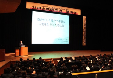 11月2日(木)13時15分から、父母と教師の会主催の講演会が御蔵入交流館大ホールにて開催されました。講師は仙台市にあるブレークステート代表で、メンタルトレーナー&ポジティブ心理カウンセラーの吉田こうじ氏で、「自分らしく豊かで幸せな人生を生きるためには」という演題で講演していただきました。