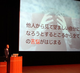 講演では、童謡の「うさぎとかめ」の歌詞を例えとし、「他人の基準で自分を評価、判断することをやめよう」、「もっと自分を好きになろう」などのお話がありました。