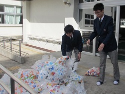 11月9日(木)、インターアクトクラブの活動として、以前より集めてきたペットボトルキャップを寄付する活動を行いました。