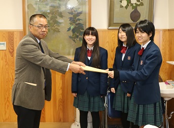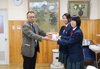 12月5日(火)、本校茶道部がチャリティ茶会を実施した際に集まった12,200円を、社会福祉法人南会津町社会福祉協議会へ寄付いたしました。また、赤い羽根共同募金として、生徒と先生方から頂いた10,842円を社会福祉法人福島県共同募金会南会津町共同募金委員会にお渡ししました。様々な社会福祉事業で有効利用していただければと思っています。
