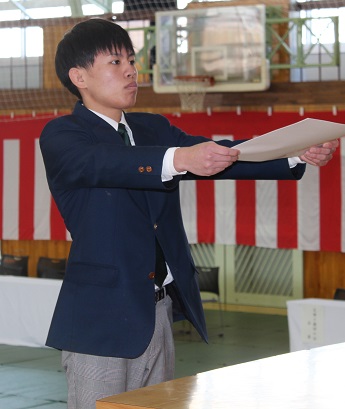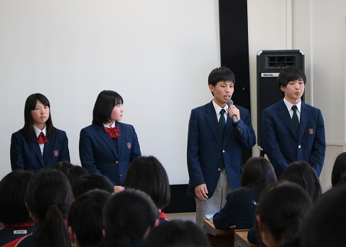 新入生、2,3年生よりそれぞれ代表挨拶がありました。