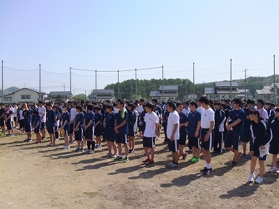 体育委員の生徒を中心に準備体操を行い、競技へ臨みました。