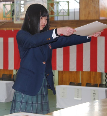 「新入学生代表誓いのことば」では 猪巻唯さん が高校生活への抱負を述べました。