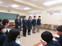 12月15日(火)、3年生生徒を対象に「スーツ着こなし講座」を行いました。紳士服専門店コナカ会津若松店の店長嶋田様を講師にお招きし、場面に応じたスーツの着方や選び方などについてお話をしていただきました。男女1名代表の生徒には写真のようにスーツを着てもらい、着こなし方のポイントをわかりやすく説明していただきました。生徒たちは、モデルの生徒を見ながら入社式などの服装を想像していた様子でした。