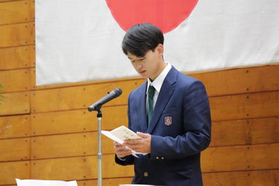 新入生、2,3年生よりそれぞれ代表挨拶がありました。