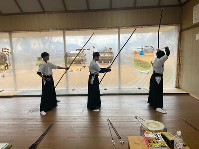 2022年11月25日 17時59分11月23日(水)に、本校弓道場において、第3回校内四十射大会を行いました。渡邊漣君(1年)、芳賀柊也君(2年)、木下子竜君(3年)が22射的中させて射詰となり、射詰の結果、渡邊君が優勝しました。日頃の成果を出す良い機会となりました。今後とも、大会に向けて頑張ってまいりますので、応援よろしくお願いいたします。